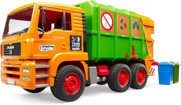 BRUDER MAN TGS camion trasporto rifiuti arancione 03760