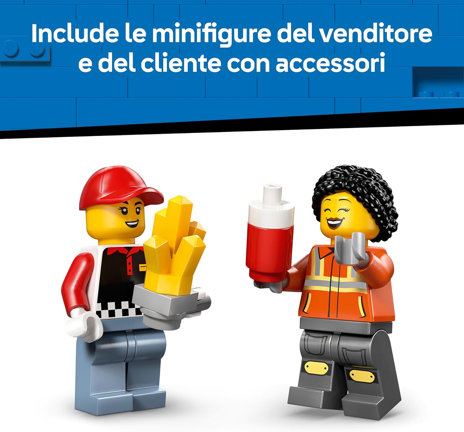 - CAMION GIOCATTOLO DELLE PATATINE: il divertimento è assicurato con il set LEGO City Food Truck delle Patatine, un colorato gioco di ruolo per bambini e bambine da 5 anni in su
