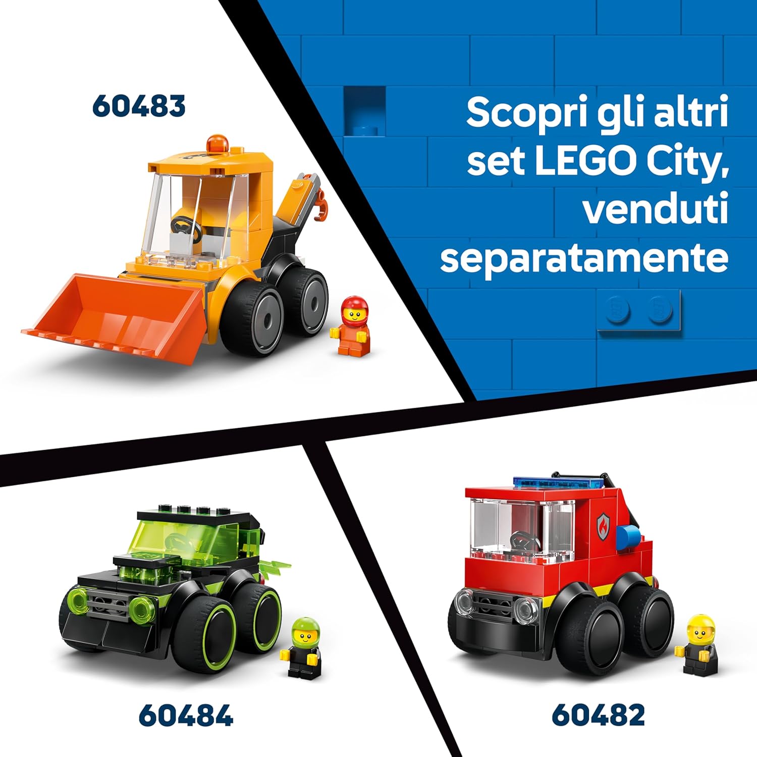 - PARTE DELLA COLLEZIONE LEGO CITY: aggiungi questo set ai set Veicoli – Autopompa (60482), Veicoli – Ruspa da cantiere (60483) o Veicoli – Auto da Corsa da Gioco (60484), venduti a parte, per creare una collezione di mini veicoli