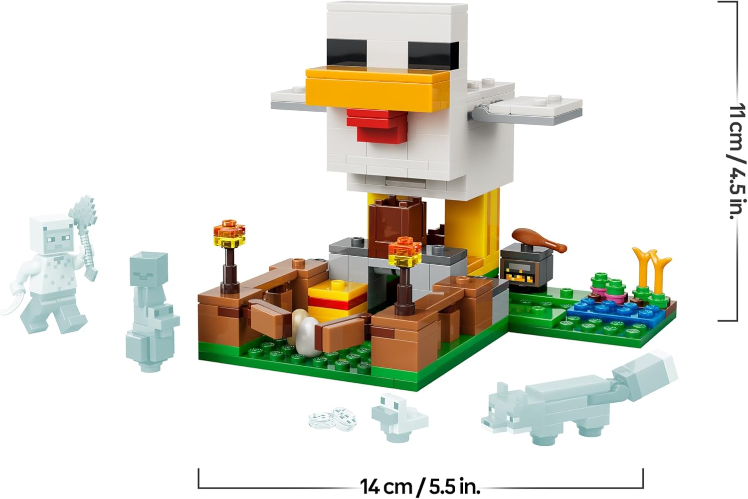 • COSA CONTIENE LA CONFEZIONE? Questo gioco di ruolo Minecraft include una fattoria LEGO a forma di pollo che depone uova e distribuisce semi, oltre a delle torce, del fieno, un'ascia, un affumicatore e altro ancora