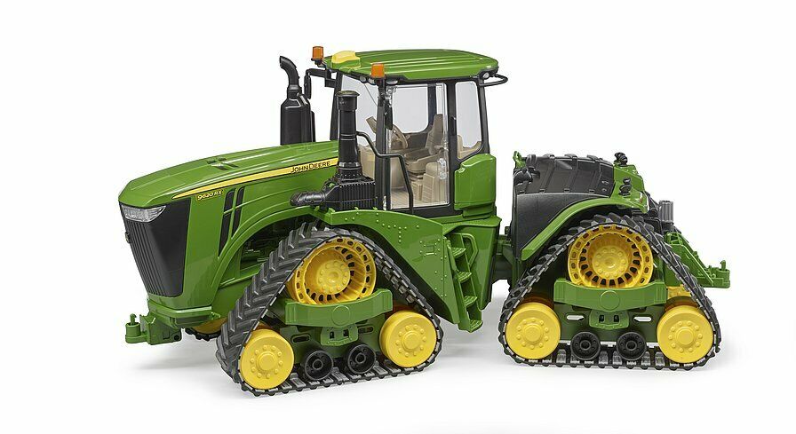 Di pari passo all'aumentare delle esigenze delle moderne aziende agricole, è più importante che mai incrementare l'efficienza delle macchine in servizio. Con il modello 9620RX, John Deere presenta il trattore cingolato più grande e più potente visto finora. Con una potenza del motore fino a 670 HP e i quattro cingoli, che gli conferiscono una potenza di traino favolosa e la migliore protezione possibile del suolo, questo esemplare è il partner ideale quando si tratta di gestire lavori di traino pesanti con attrezzi quali coltivatori o aratri. Questo imponente trattore, nella super-realistica scala 1:16, fa ora il suo ingresso nell'assortimento BRUDER. Come l'originale, il modello presenta la nuovissima trazione a cingoli e lo sterzo articolato in stile fuoristrada. La cabina del conducente è dotata di portiera apribile e un imponente cofano motore, che può essere sollevato per dare un'occhiata all'enorme motore al suo interno. Al gancio di traino con unità di sollevamento regolabile in altezza è possibile fissare numerose unità da rimorchio dell'assortimento agricolo BRUDER.
