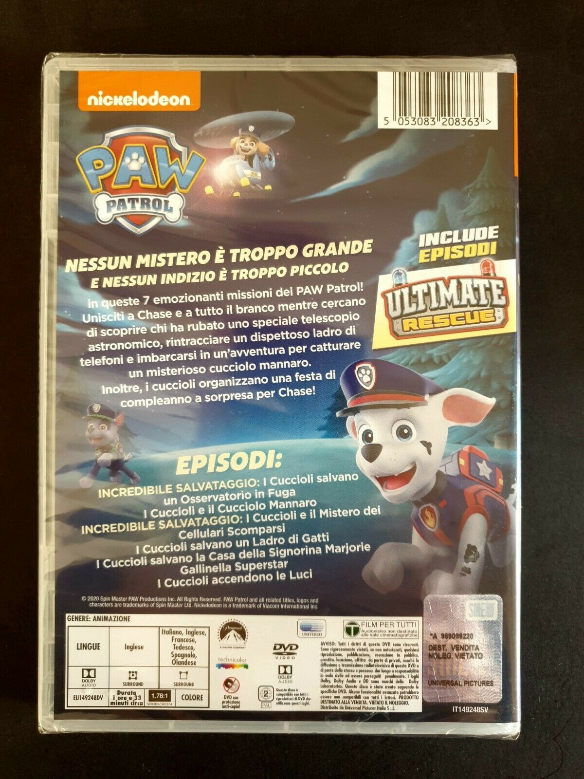Paw Patrol - I Cuccioli Risolvono Un Mistero *Paramount * Distribuito Universal Pictures Audio Italiano, Francese, Tedesco, Spagnolo, Olandese, Surround 2.0 * Inglese Dolby Digital 5.1 DVD Nuovo Sigillato.